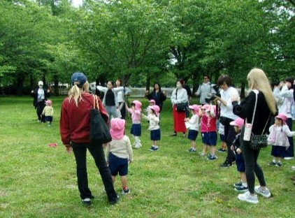大型バスに乗って舎人公園まで親子遠足へ行ってきました。