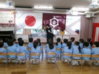 近隣の幼稚園からザリガニをいただき、さっと手に持ったり、恐る恐る触ったりなど興味を示していました。