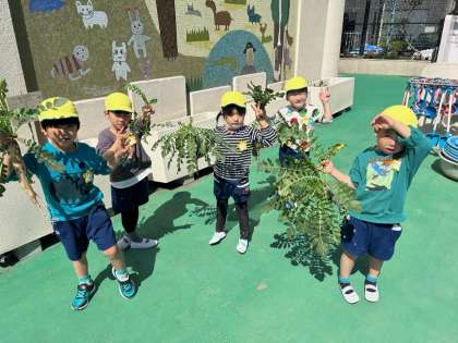 進級した頃は、初めてのことに消極的だったり、失敗したらどうしようとドキドキしたりすることが多かったつき組のみんな。今ではいろいろなことに興味をもって、ワクワク取り組むようになりました。最近は書道、体験給食、誕生会の司会と、にじ組がしていたことを自分たちができるということが嬉しくてたまりません。