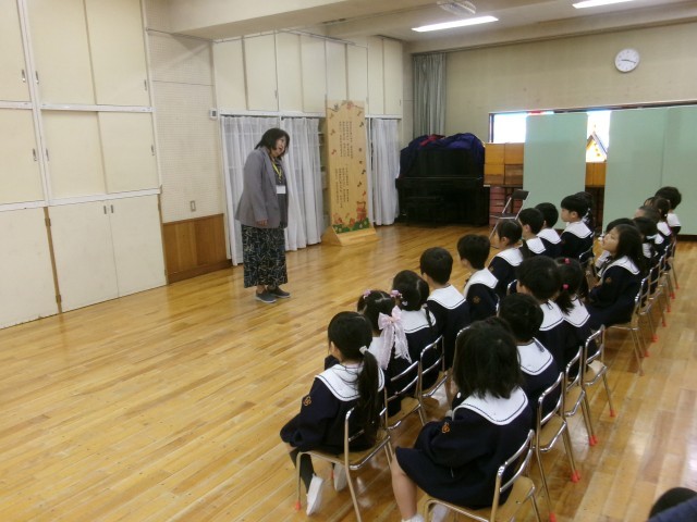 田原幼稚園は新しい園長先生を迎えました。子供たちは始業式ですっかり園長先生と仲良しになりました。