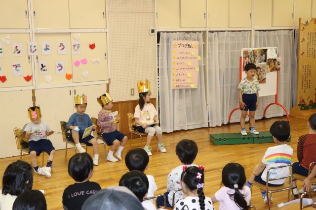 会場の準備や司会は年長ばら組さんが行いました。昨年度のばら組さんに教えてもらったことを思い出しながら張り切って取り組んでいました。