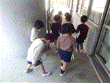 4歳児は、トナカイの足跡が校庭にあるかもしれない・・・。と探しにいきました。