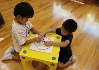 台東区民話と伝承遊び普及委員会の方に「かっぱの人助け」という合羽橋の名前の由来になった民話紙芝居と紙相撲を教えていいただきました。地域への親しみを感じたり昔ながらの遊びを楽しんだりするよい機会となりました。