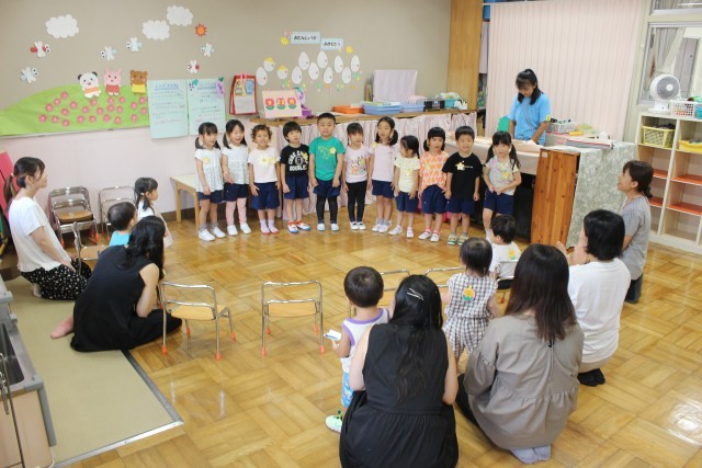 最後には、年中組のわかば組が“とんぼのめがね”の歌を歌いに来てくれて、“とんぼ”を持って、歌を楽しみました。