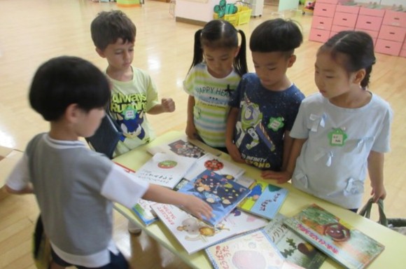 他にも、毎日担任が読んだり、希望した保護者が読み聞かせをしたり、図書館に出掛けたりするなど、絵本に親しむ機会をつくっています。