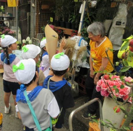 花屋では、店主に花の飾り方や意味を教えてもらいました。幼稚園に帰ると、さっそく年下の友達に教えてあげる姿がありました。