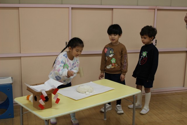 最近は、鏡餅を飾らないご家庭も増えているようです。「鏡餅はないけど、お家でお餅を食べながらお願いするね」と、家庭でも鏡開きをすることを楽しみに話す子もいました。