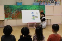 年長児あおば組が、1学期から地域にお住いの澤先生に御指導を受けている日本の伝統行事の獅子舞。できるようになってくると、意欲的に取り組むようになり、澤先生に新しい動きを教えてもらうたびに、自分たちで獅子頭をもって繰り返し動かしていました。また、年少児や年中児の幼児の近くに行き「悪いものを食べてあげる」と、お獅子の口をパクパクしている様子も見られました。澤先生から、最後の指導日の終わりに、「みんなが谷中まつりで頑張れるようにに願いのこもった鈴だよ」と澤先生の演じるお獅子にパクパクしてもらったあと、口の中から鈴が出てきてみんながいただきました。これで大成功間違いなし!!