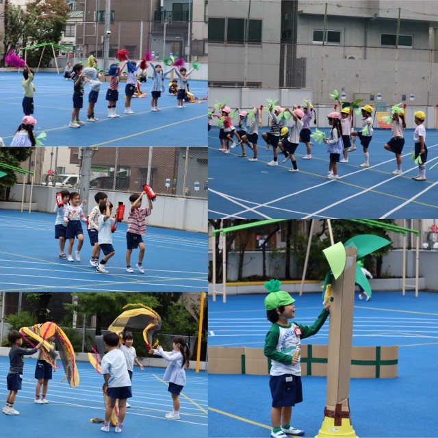今日は校庭で全学年が集まって、それぞれのダンスをしました。