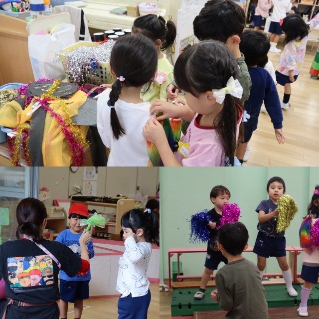 競技やダンスで使った用具や衣装を用意しておくと、早速好きに使って遊び始めていました。