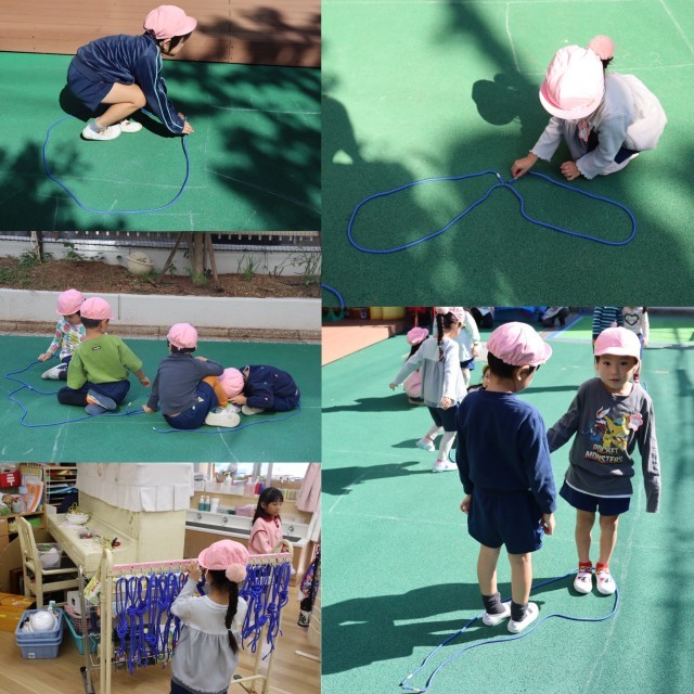 縄を使って形を作ったり、それを家に見立てて引越し遊びをしたり。