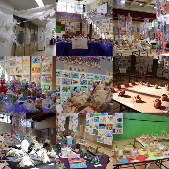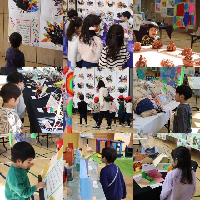 廊下やアリーナ他、会場いっぱいに飾られた作品に、子供たちは見とれていました。