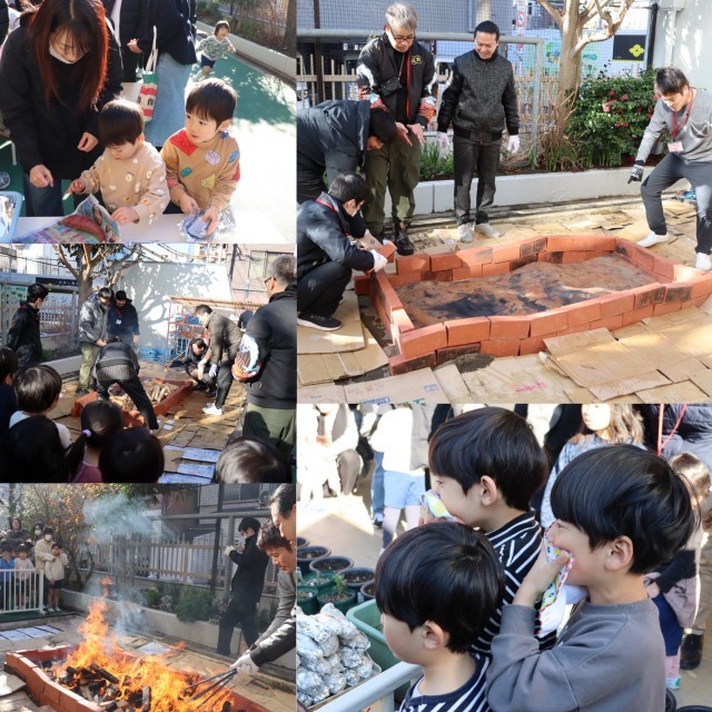 有志のお父さんたちの協力で、砂場にかまどを作り、やきいもをしました。