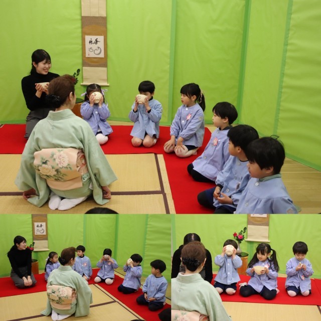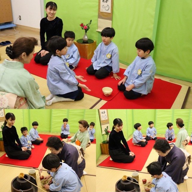 さくら組は先生に点てていただいたお茶を、きく組は友達同士で点てたお茶をいただきました。