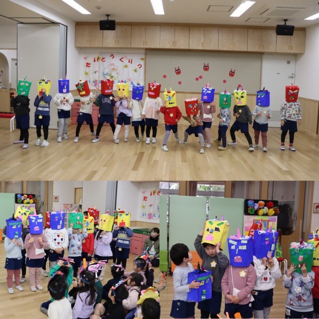 きく組が、他の部屋や園庭にも豆まきをしてくれて、幼稚園からはすっかり「鬼」はいなくなりました!