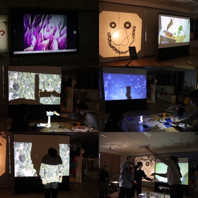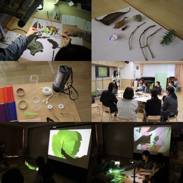 せっかくの機会なので、区内の他園の先生方もお誘いし、マイクロスコープや書画カメラなど、最新のデジタル機器と、いまや日本では製造していないOHPを使って、「光」の表現について学びました。