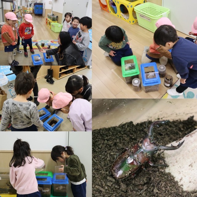 クワガタが来た!というニュースはまたたく間に園内に広がりました。