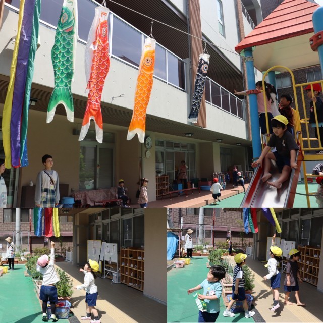 アスレチックの上から見たり、ひらひら泳ぐしっぽをつかまえようとジャンプをしたり…