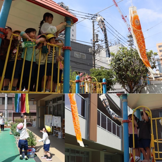園庭にこいのぼりをあげました。