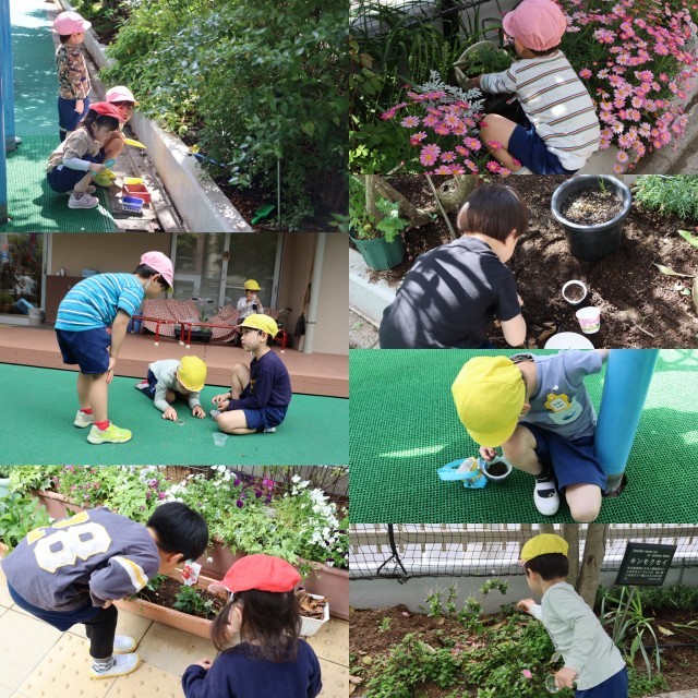 帰るときには土に戻すようにしていますが、保護者のみなさま、洗濯の前に念のためズボンのポケットを確認してくださいね。