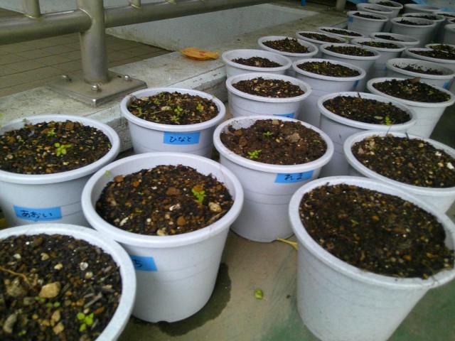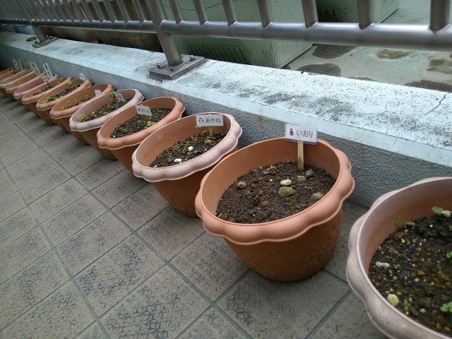 毎日水やりをしたり、自分の鉢を見に行ったりと、生長を楽しみにしている子供たちです。