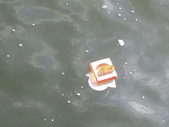 流しびなに名前と願い事を書いて、特製スロープ台から隅田川の川面に流しました。
